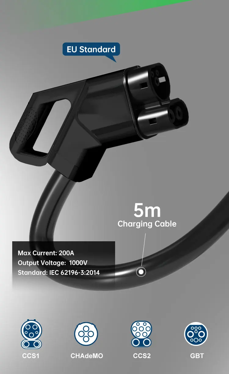 CCS1/CCS2/GBT/NACS: 150Vdc –1000Vdc;CHADEMO: 150Vdc –500Vdc