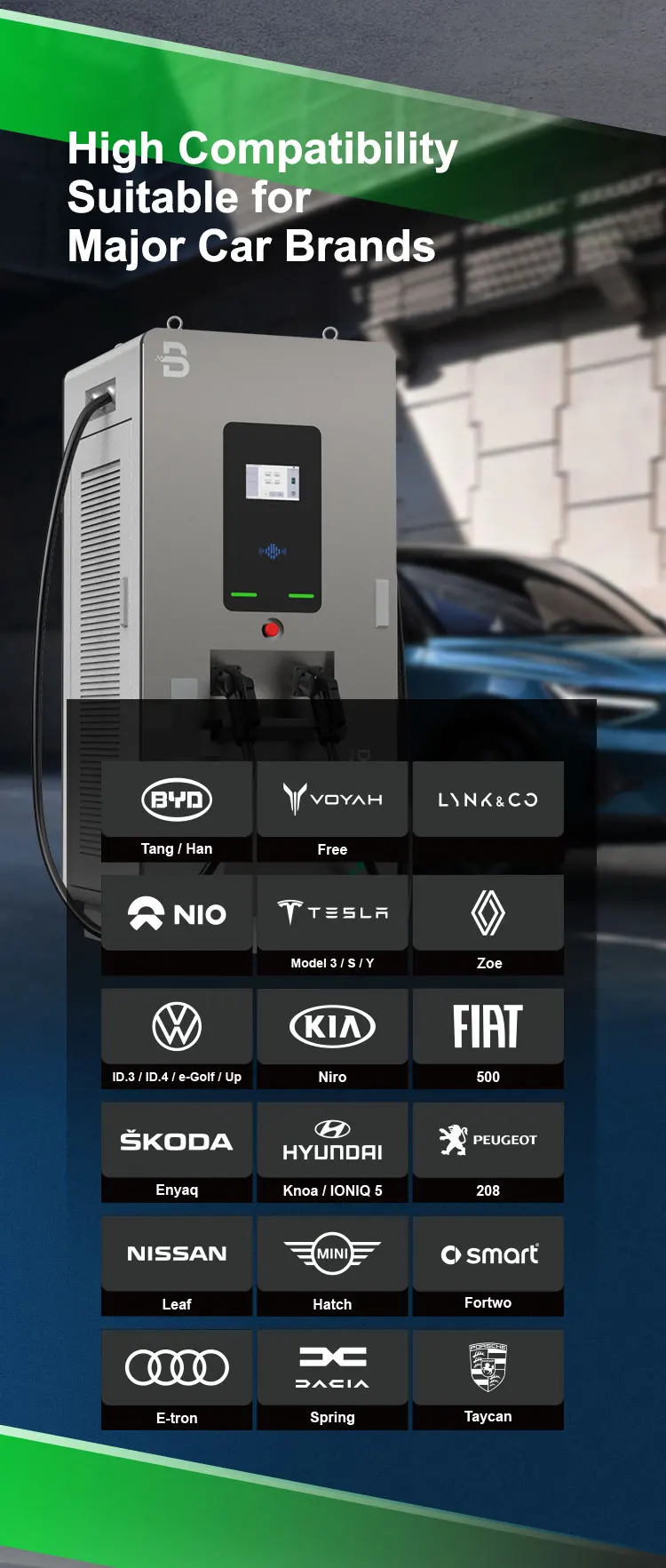 * 1 Guns or 2 Guns or 3 Guns ( CCS1, CCS2,Chademo,GBT,AC Optional)