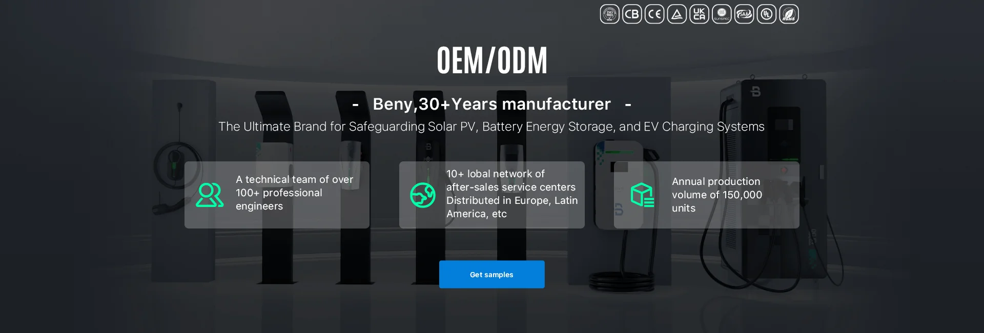 We are a leading brand in annually producing hundreds of thousands of quality DC protection products and EV charging stations for complete and reliable solar photovoltaic, battery energy storage, and EV charging system. Certified by UL, SAA, CB, CE, TUV, UKCA, ISO, and RoHS,